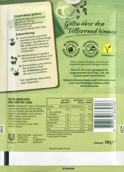 Artikelnummer: 4502070261 Kategorien: Fertiggerichte & Konserven, Fix für Fleisch, Fix-Produkte Schlagwort: Knorr