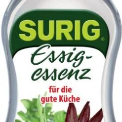 Surig Essig-Essenz mit der 4 fachen Menge Wasser, Wein, Apfelsaft oder anderen aromatischen Flüssigkeiten verdünnt, ergibt 5%igen Essig und eine köstliche Würze für Salate, Fleisch- und Fischgerichte.